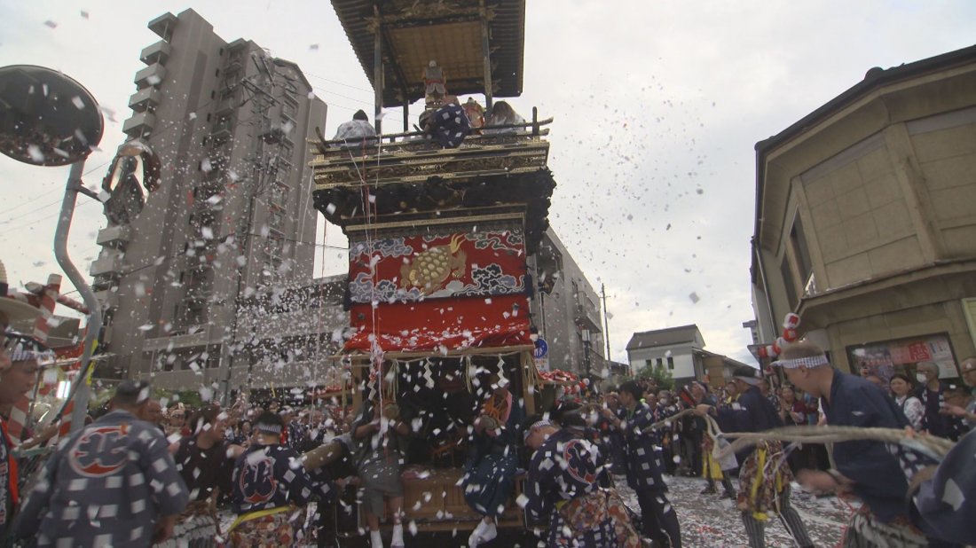 彫刻や刺繍に彩られた豪華な山車が勢いよく回転する「どんてん」は迫力満点!