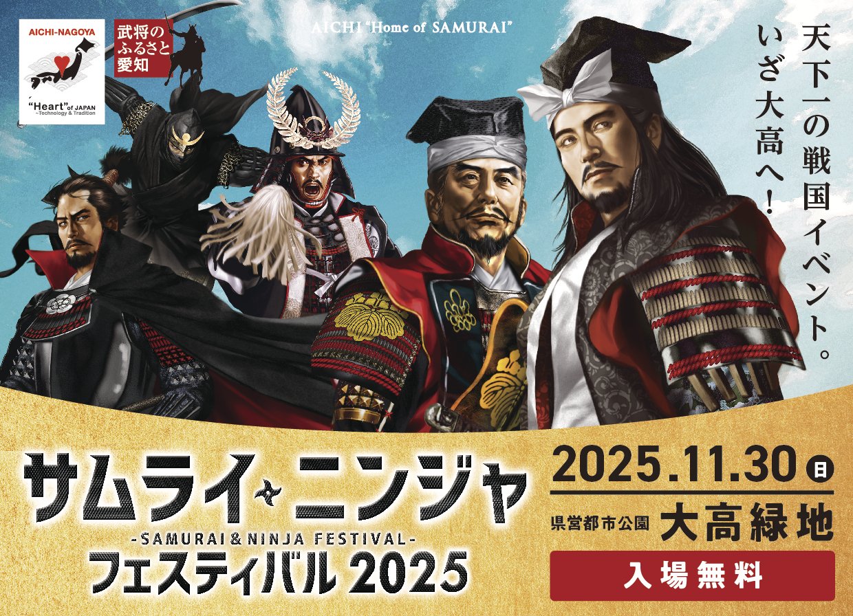 11月30日(日)に、大高緑地で開催される「サムライ・ニンジャフェスティバル2025」に登場予定の彼らが、イベントの魅力をスタジオで実際に教えてくれます!