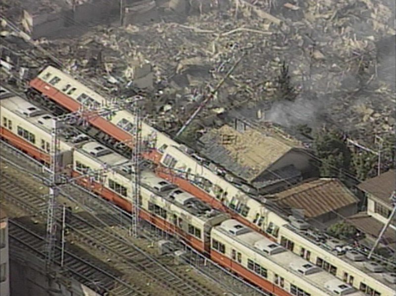 1995年の阪神・淡路大震災。壊滅的な被害を受けた鉄道網。